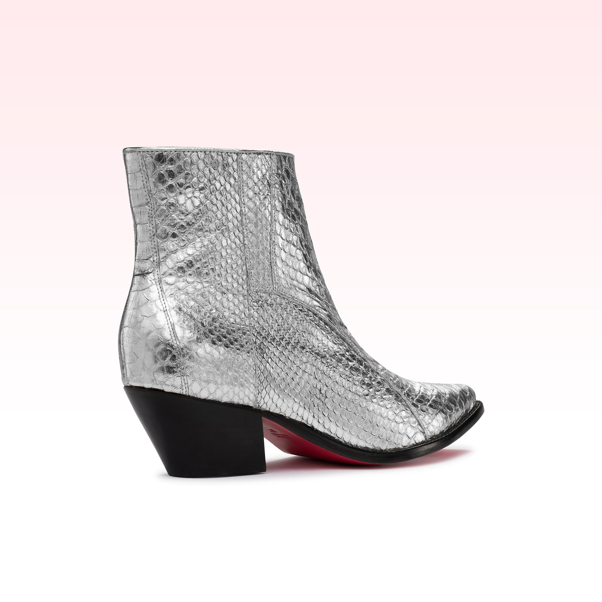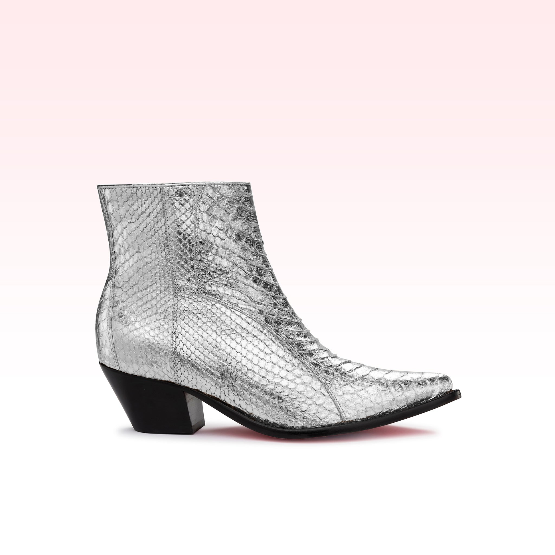 Icônica e sofisticada, a Pietra traz em sua modelagem poder e muita elegância, características marcantes de um Zeferino. A parte superior é cuidadosamente trabalhada em couro python com um sofisticado bico pontiagudo sobre um salto bloco de 5 cm, com uma sola de couro pink característica da Zeferino.