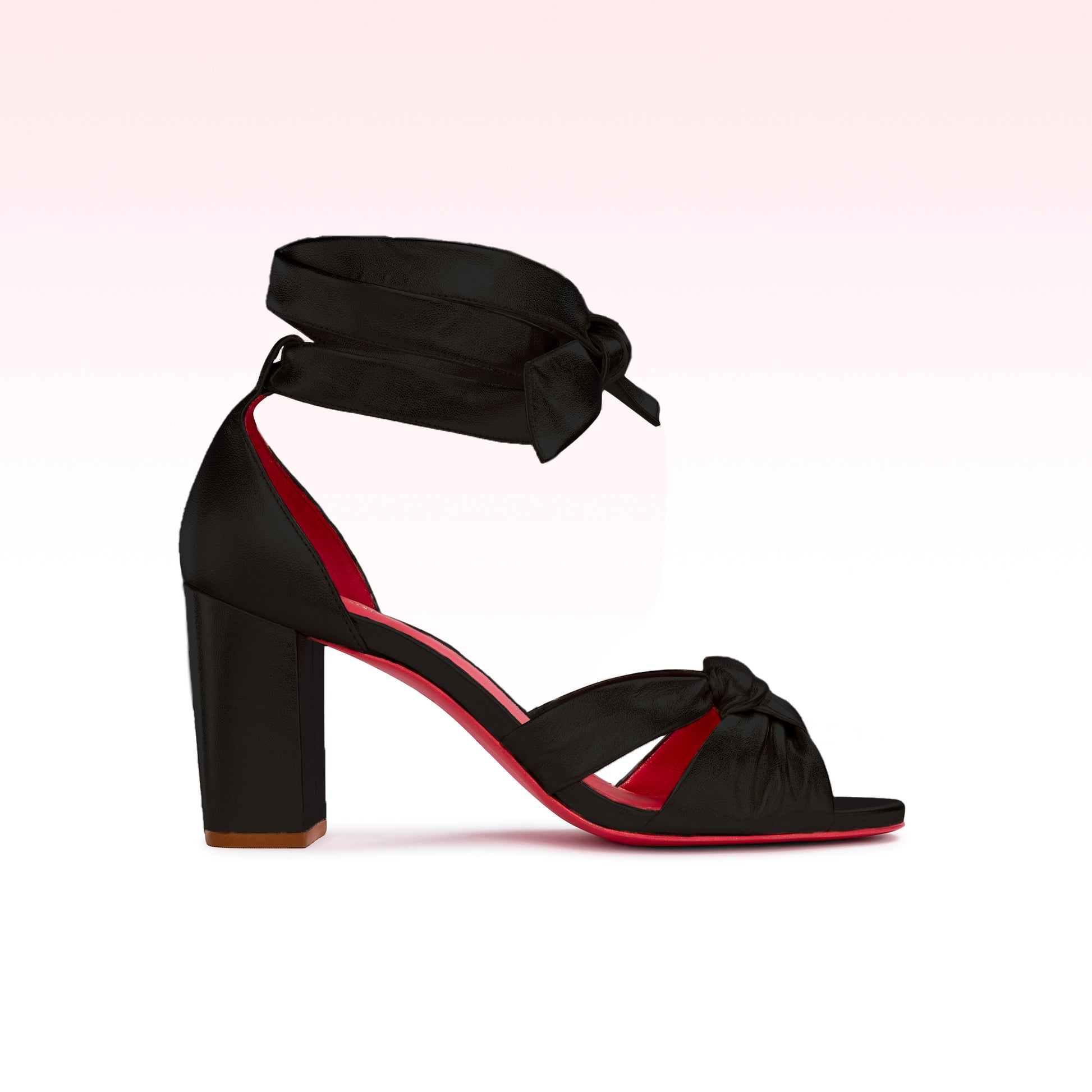 Sandália em couro vestuário com amarração, salto bloco tamanho 8,0cm