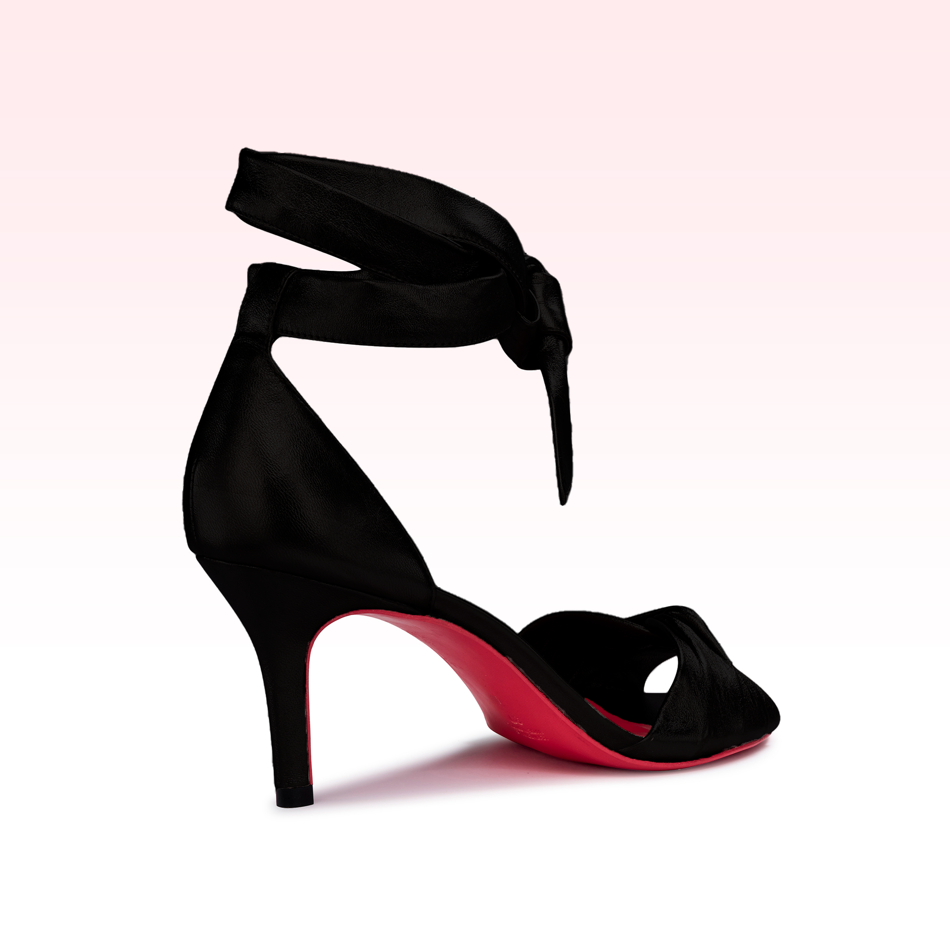Sandália em couro skin preto com salto fino tamanho 7cm.
